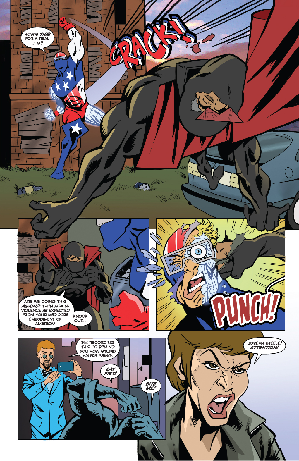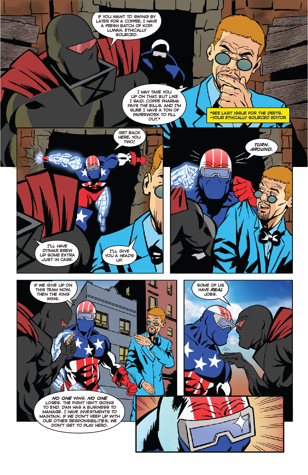 With the team falling apart, who will be left to stop The King of All Evil Dragons and V.I.L.E.??? Rollerblade is in custody. Dan Garret Coppe is broke with Coppe Pharma in shambles. Mr. Sleep suffers a crisis of conscience. Gamma Rei Burst faces off against Dirac the Infinite alone in orbit around Jupiter. And The Super American has a hidden agenda… Who’s left to save the day?